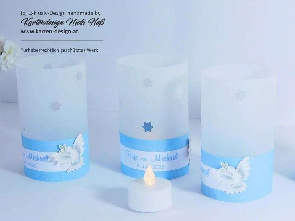 Windlichthülle zur Taufe mit kirchlichen Symbolen – Ein leuchtendes Dankeschön für deine Gäste